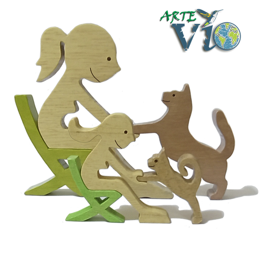 Gatit@ Amoros@ - Escultura sobre Pedestal - Terminación Personalizada en Madera Sólida