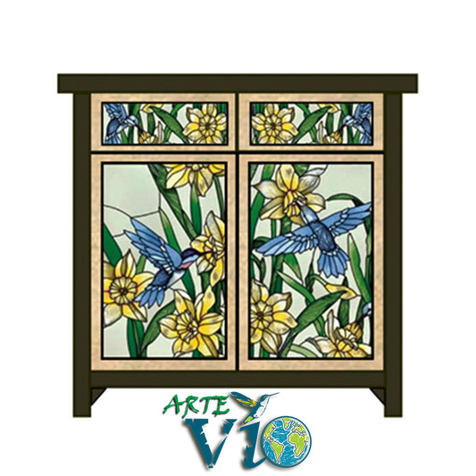 Gabinete Colibríes - Arte en Reverso del Vidrio - Madera Importada - Colores Personalizados - Medidas Ajustables